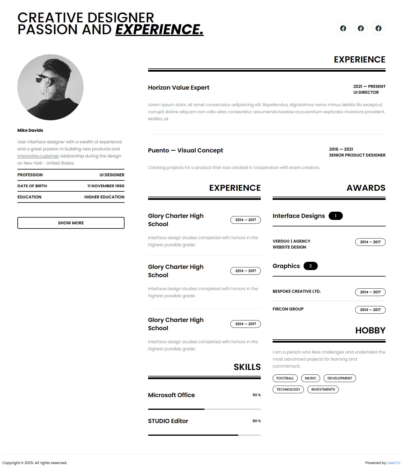Bold and dynamic layout for creative professionals
